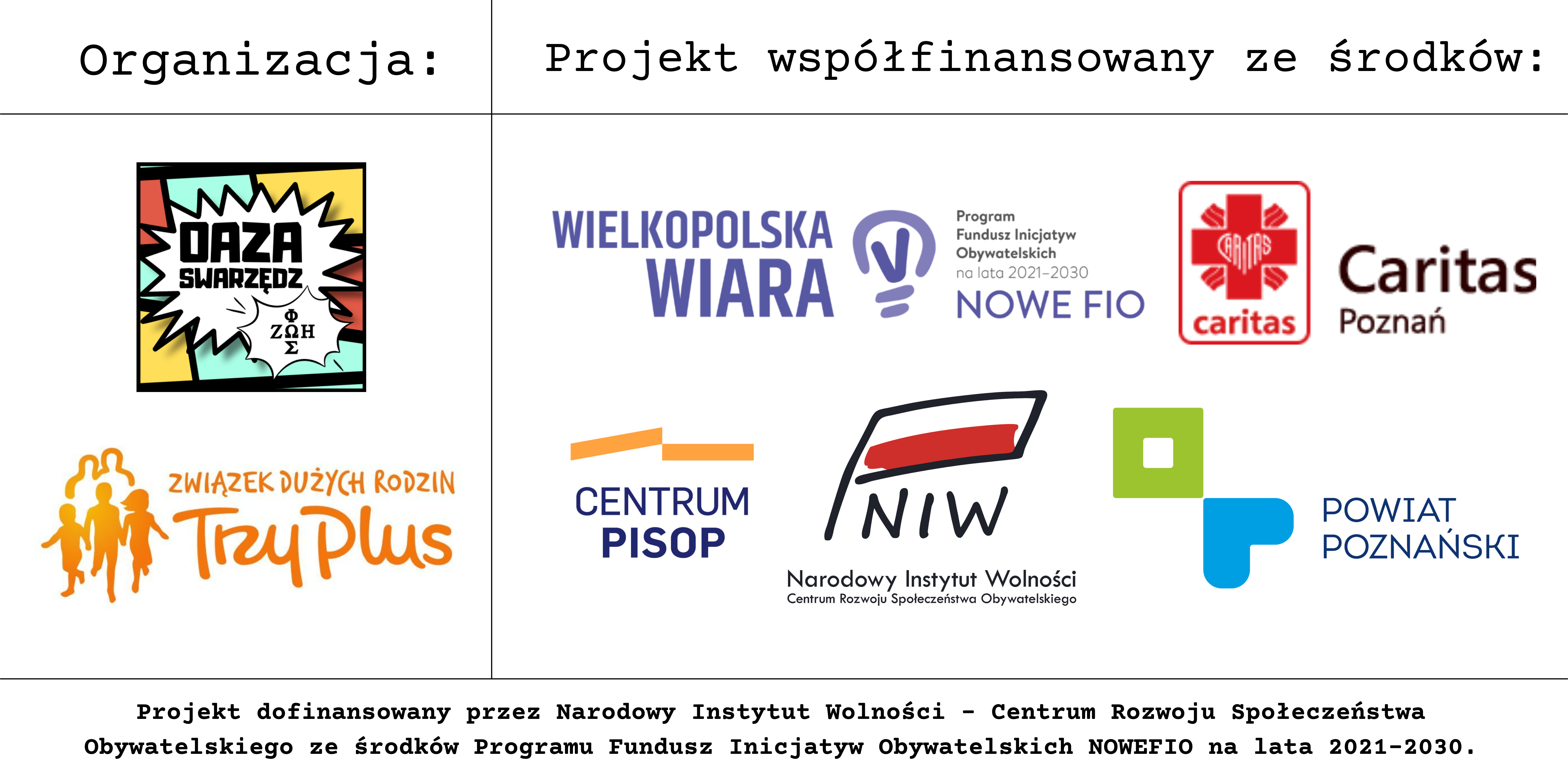 Przygotowanie takiego wydarzenia wiązało się z pracą wielu osób i organizacji, którym tutaj chcielibyśmy z serca podziękować. Projekt był współfinansowany w ramach programu Wielkopolska Wiara oraz ze środków Powiatu Poznańskiego. Sponsorom i partnerom serdecznie dziękujemy.