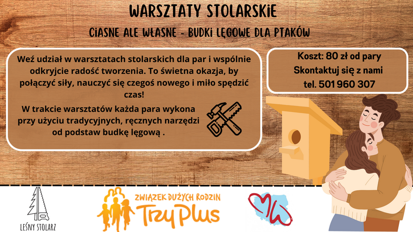 Weź udział w warsztatach stolarskich dla par i wspólnie odkryjcie radość tworzenia. To świetna okazja, by połączyć siły, nauczyć się czegoś nowego i miło spędzić czas!